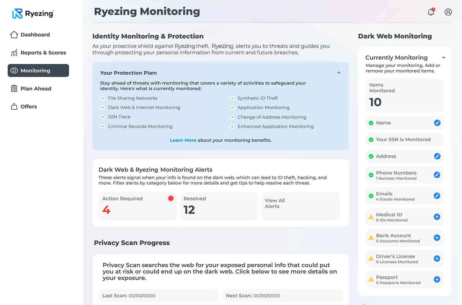 “It was great to understand what was happening and how Ryezing helps so much. The alerts are an excellent way to stay connected throughout our credit reporting journey.”
